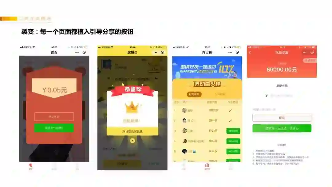 我每次设计完产品玩法后,都会梳理一下用户路径,看每一个环节的页面,是否可以加入“裂变”的引导。