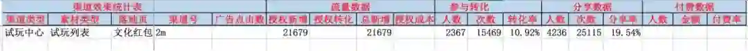 它专门做了一个新用户的拉新活动作为承接路径,第一天测试导流了21679个新用户,其中有4236人体验了小程序后有分享行为,平均每人分享了五次,一共分享次数是25115次。