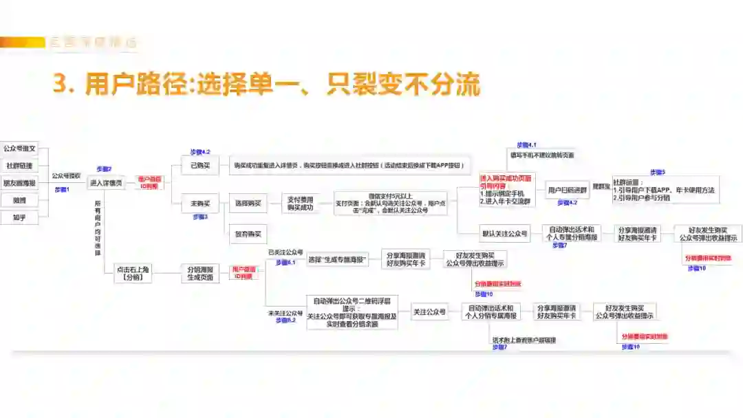 如果某个环节的页面,用户选择太多,宁愿砍掉,也不要在裂变的主路径分流。