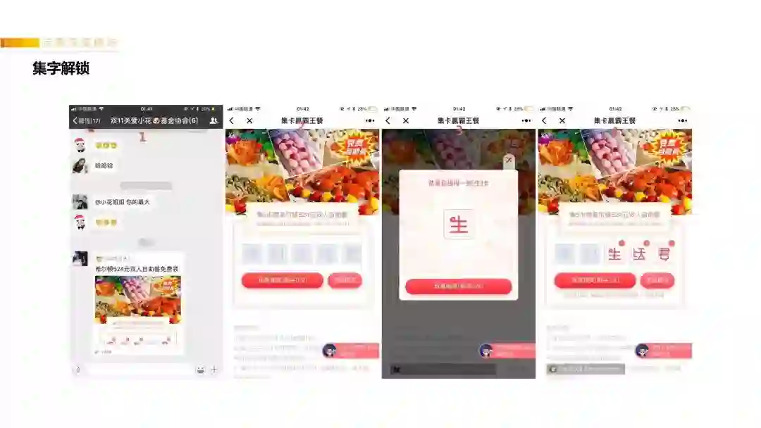 和“集字”的本质是一样的,不过“游戏化”的感觉更高,目前用户的新鲜感更强,比集字的裂变效率高,也是通过设置某个“碎片”的出现概率,可以一定程度上控制活动成本。