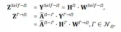 考虑到在异质图里,不同类型的对象的特征通常有着不同的分布,因此在每一层,通过相关的投影矩阵把邻居特征映射到一个共同的语义空间中。同时,也将上一层输出的目标对象的自身特征也投影到这个空间:
