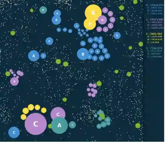 。Go-Bigger还设置了单个分身球的重量上限和重量衰减,使得单一分身球无法保持过大重量,迫使其分裂以减少重量损失。在游戏后期,团队内部的重量传递会显得至关重要,合理的重量传递可以保证团队在与其他队伍对抗时获得更大的优势。