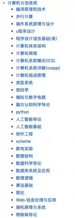 我们可以看到当前的课程目录包括编译原理和技术、并行计算、操作系统原理与设计、c程序设计、程序设计语言基础、计算机体系架构、计算机网络、计算机系统概论(ICS)、计算机组成原理等基础课程此外,还有 Python、人工智能导论、人工智能基础、算法基础等人工智能相关的内容。