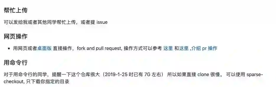 不过,目前该项目中的很多课程资料并不完善,作者也希望通过能有更多人的参与,主要有三类投稿方式:
