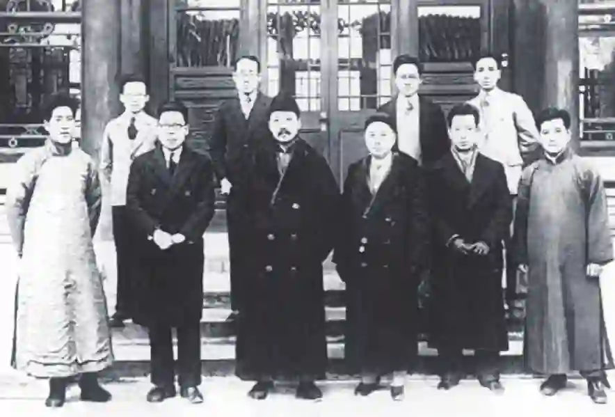 1936 年北平研究院的前辈们(前排左起:盛耕雨、严济慈、李书华、饶毓泰、朱广才、吴学蔺;后排左起:钱临照、鲁若愚、陆学善、钟盛标)