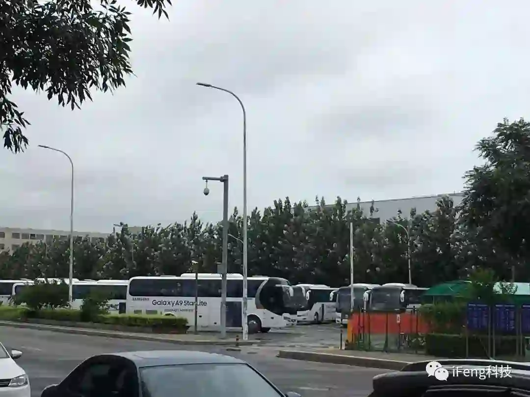 上午10点多,一辆车身上印着三星Galaxy A9 Star Lite广告的工厂班车停靠在正门附近,下来2、30人,通过门口的门卫室之后,这些男男女女还需要通过一间独立的安检屋子,才能进入到工厂园区内。