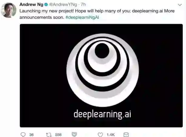 6 月23 日,吴恩达在推特公布 deeplearning.ai,但没有说明该项目要做什么,引来不明就里的群众围观;