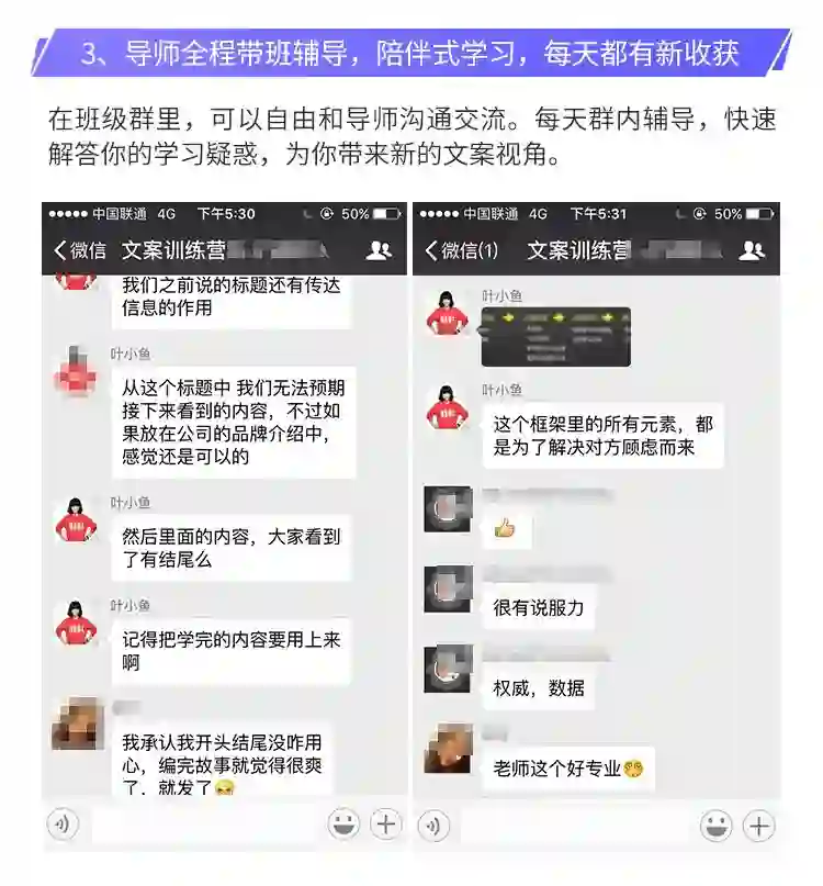 “起点学院&腾讯课堂”联合打造文案训练营,通过4周的系统学习, 11次文案实操,老师的1对1批改和班级群内答疑。