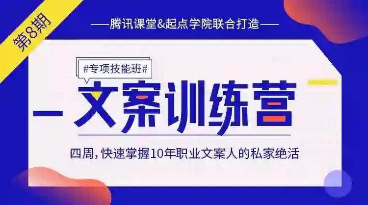 腾讯课堂&起点学院打造的文案训练营第8期开启报名!现在报名有限时优惠喔~