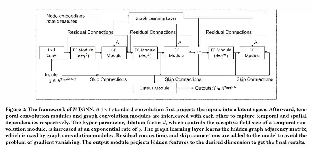 摘要:多变量时间序列的建模长期以来一直吸引着来自经济、金融和交通等不同领域的研究人员的关注。多变量时间序列预测背后的一个基本假设是其变量之间相互依赖,但现有方法未能充分利用变量对之间的潜在空间相关性。同时,近些年来,图神经网络(GNNs)在处理关系依赖方面表现出了很高的能力。GNN需要定义良好的图结构来进行信息传播,这意味着它们不能直接应用于事先不知道依赖关系的多变量时间序列。本文提出了一种专门针对多变量时间序列数据设计的通用图神经网络框架。该方法通过图学习模块自动提取变量间的单向关系,可以方便地集成变量属性等外部知识。在此基础上,提出了一种新的max-hop传播层和一个dilated inception层来捕捉时间序列中的时间和空间依赖关系。图学习、图卷积和时间卷积模块在端到端框架中联合学习。实验结果表明,我们提出的模型在4个基准数据集中的3个数据上优于最新的基线方法,并且在提供额外结构信息的两个交通数据集上,与其他方法具有同等的性能。