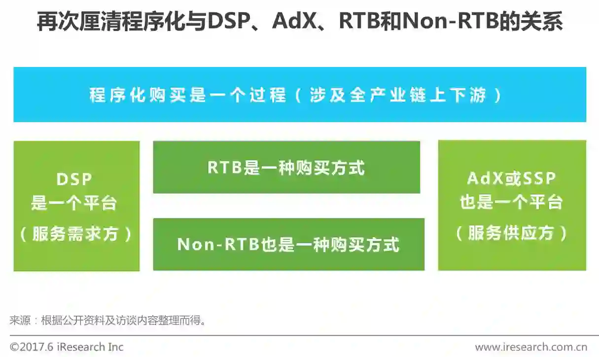 早期,市场对程序化的认知比较模糊,误以为程序化就是DSP,或认为程序化就是RTB。经过5年发展,已经走过混沌期,市场对程序化购买及其与DSP、AdX、RTB和Non-RTB的关系理解更加清晰、更为深入。