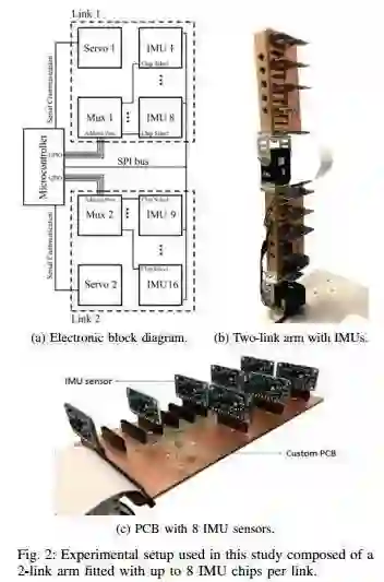 第四篇文章提出了对于机器人手臂姿态估计过程中加速度计的优化配置方法。本研究分析了如传感器的数量,传感器在机器人上的位置,以及机器人姿态估计质量的噪声特性及其信噪比(SNR)等设计参数的影响。