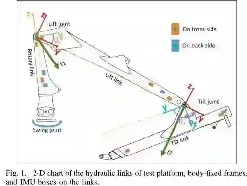 第三篇文章提出了一种基于低成本惯性测量单元(IMU)的浮基机器人平台连杆角估计算法。该算法通过由六自由度轮式工作台和三自由度液压拟人臂组成的商用移动工作机进行了验证。