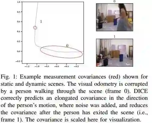 在第二篇文章中,作者提出了一种新的测量值协方差估计方法,该方法将测量值的不确定程度建模为测量值本身的函数。在本研究中,我们提出了协方差估计值的深度推理方法(DICE),它利用深度神经网络来预测传感器测量值与原始传感器数据的协方差。