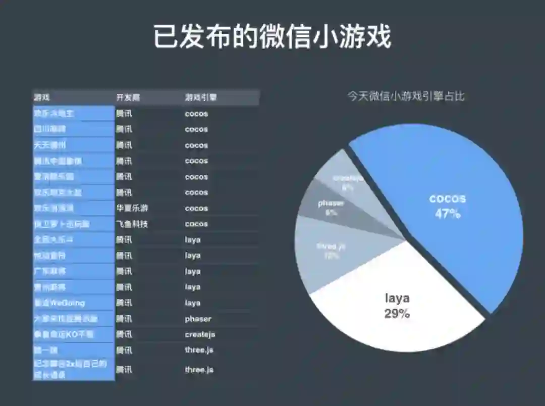在公司内部,都有三种引擎的游戏实现,下面是截止5月份的公开数据的引擎占比: