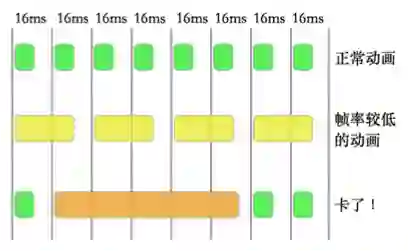但是,动画是讲究帧率的,一般如果能达到每秒60帧,那就和电影一样是很流畅的动画效果了。计算公式:1000ms/60fps=16.67ms,这就要求我们每次动画里的业务逻辑计算,都要16.6ms里完成,不能影响下一帧的显示,否则就是卡顿,也就被人说这个游戏好卡,性能好差了。