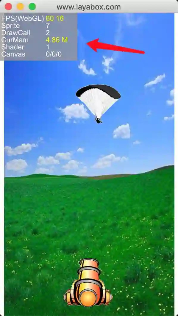 炮弹向上飞,就和伞兵向下掉一样,在帧循环里不断修改y值就可以。但是这次,我们要响应事件了,必须点击大炮,触发点击事件后,才发射炮弹。