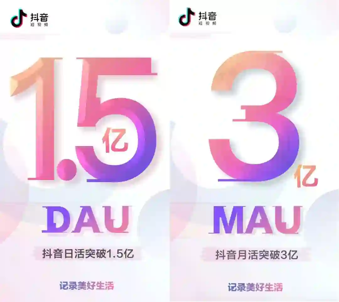 今天,一张抖音日活用户超过1.5亿的PPT截图开始在微信群和朋友圈流传,此后,抖音官方也发布了日活用户突破1.5亿、月活用户突破3亿的海报,正式坐实了这一江湖传闻。