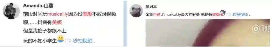 用户的积累基本靠的是社交媒体的导流。而这个时候也要归国的musical.ly在本土化上的低效和需求把握的不够好(没有美颜、不能分享到国内社交平台),也给了抖音充足的时间。
