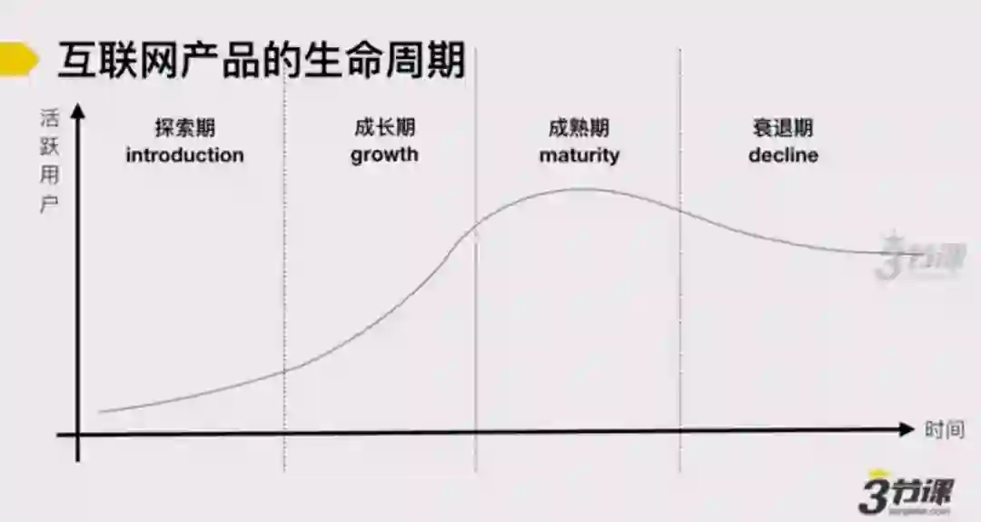 假设这些信息你都获取到了,接下来就可以按照“生命周期模型”对于产品的发展进行一个阶段的划分,然后再依次去对于每个阶段的产品规划、运营侧重点等进行具体的分析和解读。