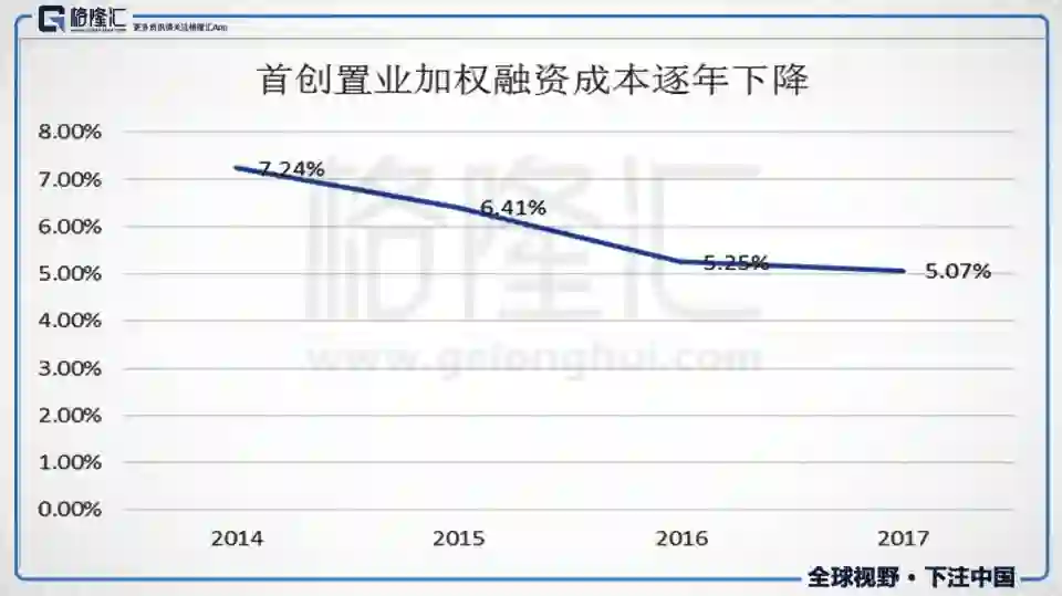 而截至到2017年末,首创的土地储备总建筑面积达到1,154万平方米,地上建筑面积893万平方米,土地储备总货值约2,573亿元。开发销售物业平均楼面地价近0.9万元/平方米,远低于当前超2.33万元/平方米的签约均价,蕴涵了足够的利润空间,为实现毛利率25%以上的有质量增长奠定了坚实的基础。
