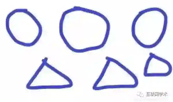 举个例子,如图所示,在没有任何提示(无训练集)的情况下,需要把下列六个图形分成两类,你会怎么分呢,当然是第一排一类,第二排一类,因为第一排形状更接近,第二排形状更接近。