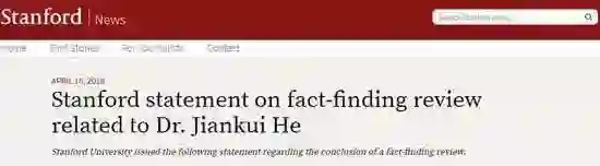 虽然斯坦福大学没有提到研究人员的名字,但大学的生物伦理学家William Hurlbut和血液学家Matthew Porteus先前已经承认与贺建奎讨论了基因编辑的人类婴儿双胞胎项目,并说他们试图劝阻贺建奎。在2011-2012年,贺建奎是斯坦福大学Stephen Quake实验室的博士后,而Quake与贺建奎的互动更是牵动了全球的研究人员的神经,这些事情在纽约时报进行了长篇的报道。(来源:潇湘晨报)