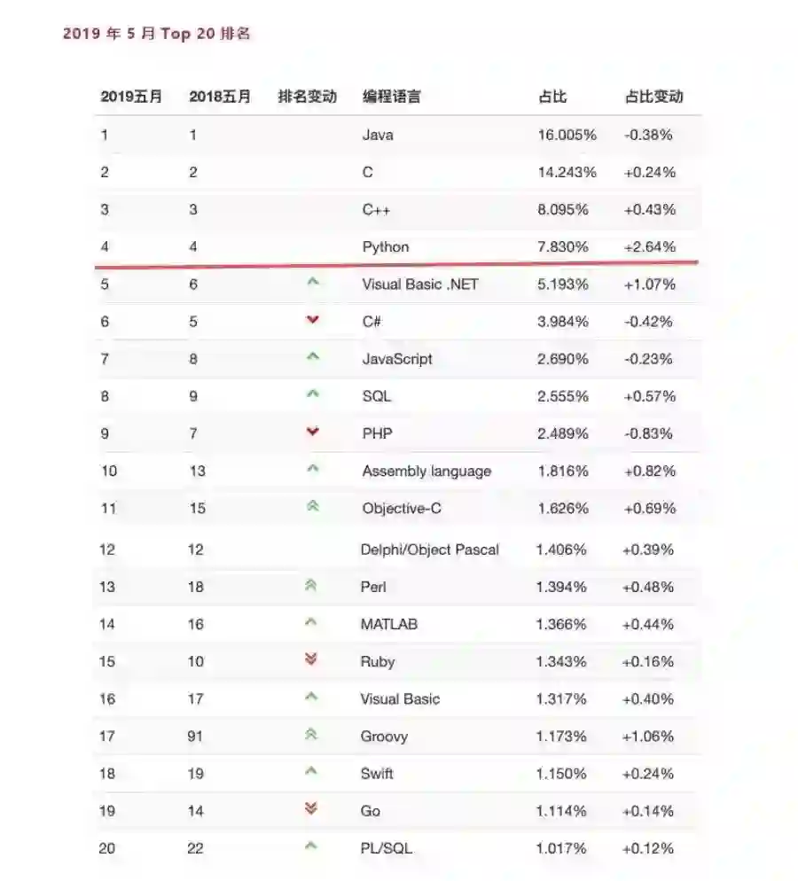 在过去的几年中,Python已经成为现代软件开发,基础设施管理领域的一个热门话题,特别是在数据科学和人工智能领域。最近,Python已经上升到TIOBE语言流行度指数的第四名。