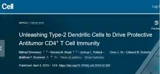 Mikhail Binnewies,et al.Unleashing Type-2 Dendritic Cells to Drive Protective Antitumor CD4+ T Cell Immunity.Cell.