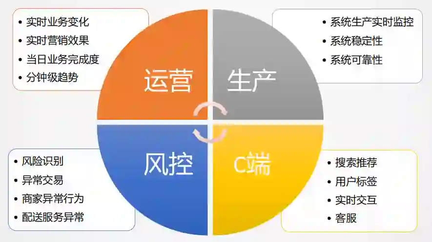 风控侧:在外卖以及金融科技用的是非常多的,实时风险识别,反欺诈,异常交易等,都是大量应用实时数据的场景