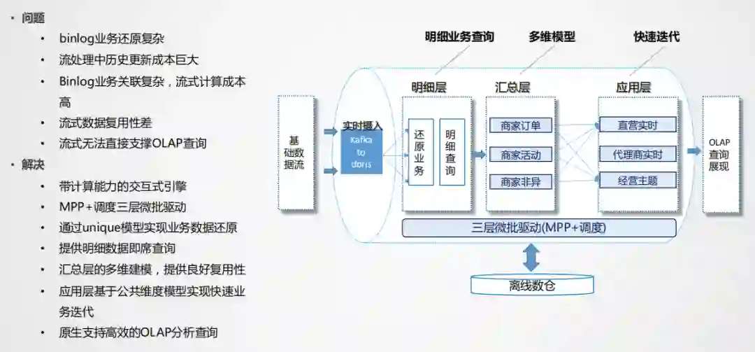 这种模式重在解决业务回撤计算,比如业务状态改变,需要在历史的某个点将值变更,这种场景用流计算的成本非常大,olap模式可以很好的解决这个问题。