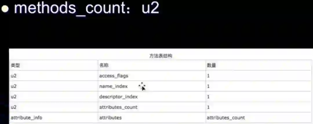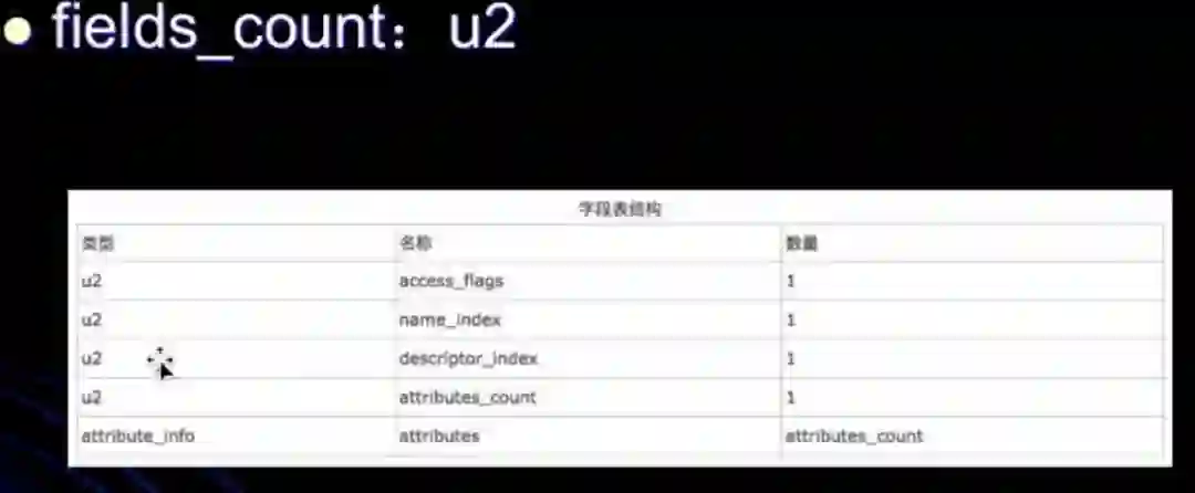 attributes_count对应十六进制:00 01 ,其个数为1,表示会有一个附加属性。也说明了有一个attributes。