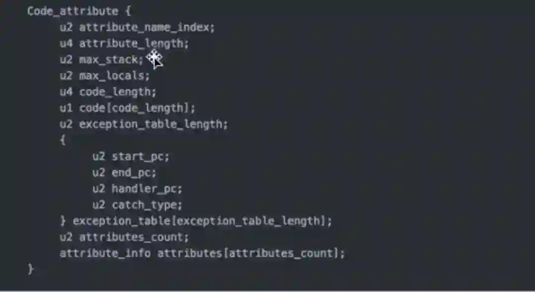 2A B7 00 01 2A 04 B5 00 02 B1 // code_lengthc长度的字节,具体执行的字节码指令