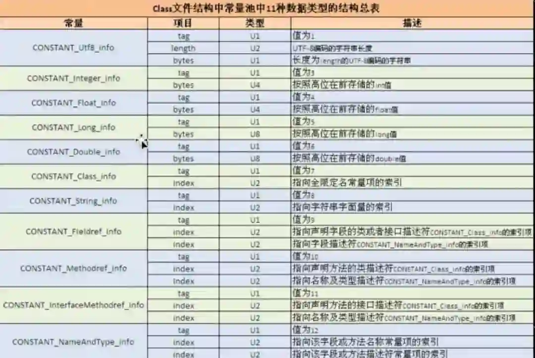 以此类推,最终都能通过十六进制字节码并结合字节码结构总表分析在常量池中找到对应的字节码内容。
