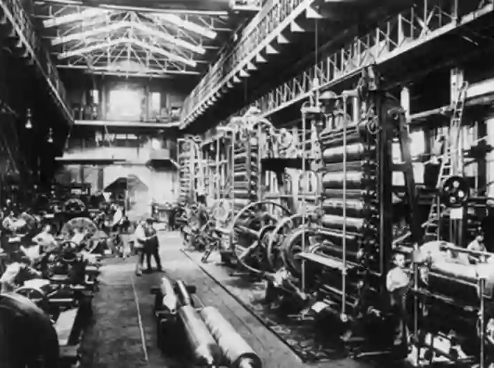 1900年英国一家工厂的童工和机械。