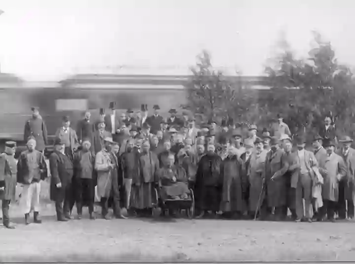 1896年李鸿章(前排坐者)率团参观德国克虏伯工厂。