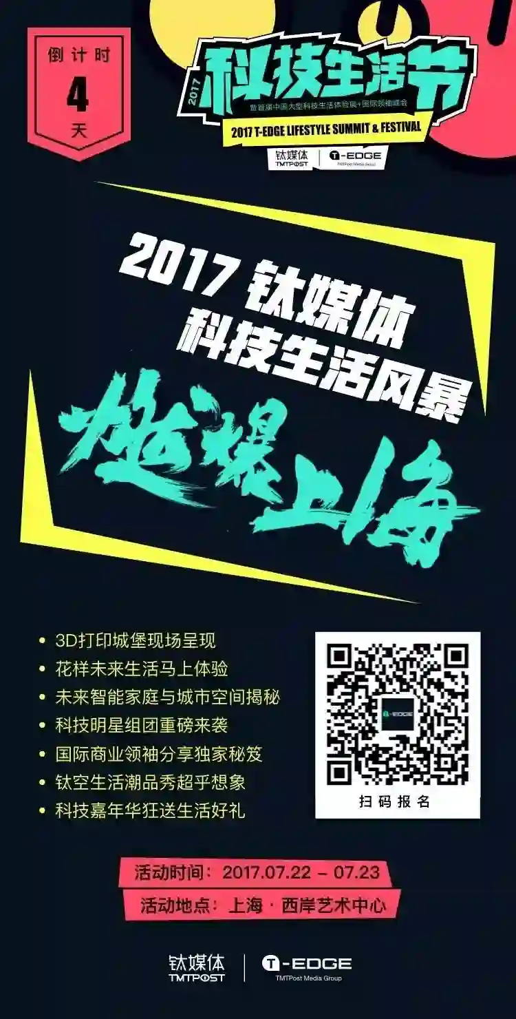 再过4天,钛媒体T-EDGE科技生活节暨首届中国大型科技生活体验展+T-EDGE国际领袖峰会就将引爆上海。这场风暴的中心和主角,我们希望就是你——我们想为敢想、敢造、敢尝试的你,献上一场大型未来创想实验。