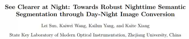 在本文中,我们提出了一个使用生成对抗网络(GAN)来缓解将语义分割模型应用于夜间环境时的准确性下降。为了联系白天和夜晚的图像域,我们进行了关键的观察,与夜间环境下的数据相比,已经存在大量标准条件下的分割数据集如BBD,我们收集的ZJU等。