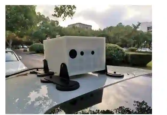在本文中,我们提出了一个主框架如图Figure1所示,以克服语义分割模型从白天到晚上的精度急剧下降问题。受生成对抗网络的思想启发,夜间图像在前向推理过程中被转换为白天域的图像。换句话说,我们通过将部分白天图像转换为夜间图像来扩充原始的大规模语义分割数据集。在这些实验中,我们证明此方法提高了语义分割模型的鲁棒性。此外,我们还使用多模式立体视觉传感器来采集了浙江大学玉泉校区白天和夜晚的图像制作了数据集ZJU,设备被安放在一个仪表车上,如Figure2所示。