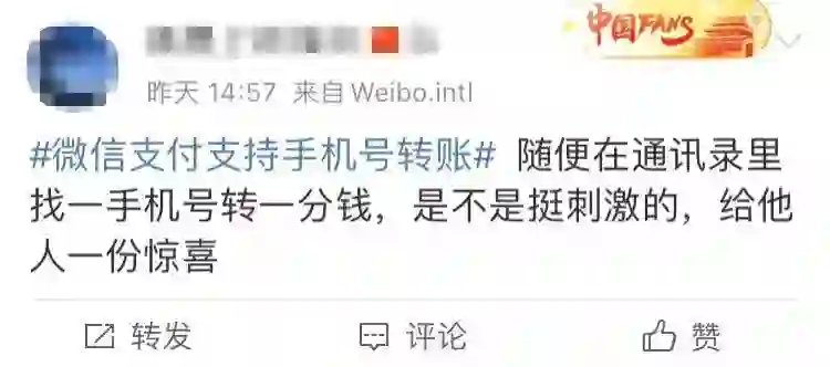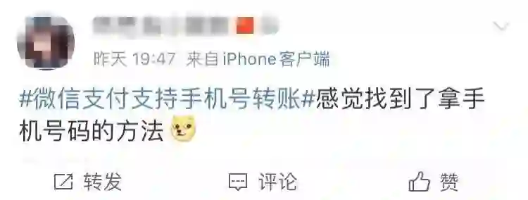 除了用来开脑洞,“向手机号转账”还能化解生活中的尴尬:即使不是微信好友、不知道对方微信号,或者不能面对面扫码,通过手机号就能发起支付。