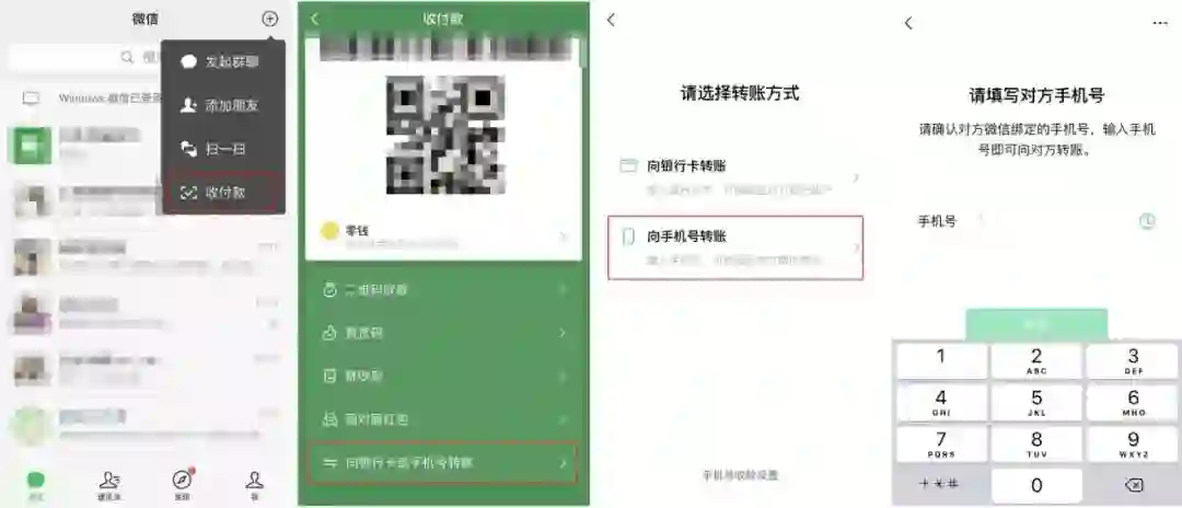 通过手机号收款前,你需要先前往微信页面右上角的“+”-“收付款”-“向银行卡或手机号转账”-“手机号收款设置”,开启“允许通过手机号向我转账”。