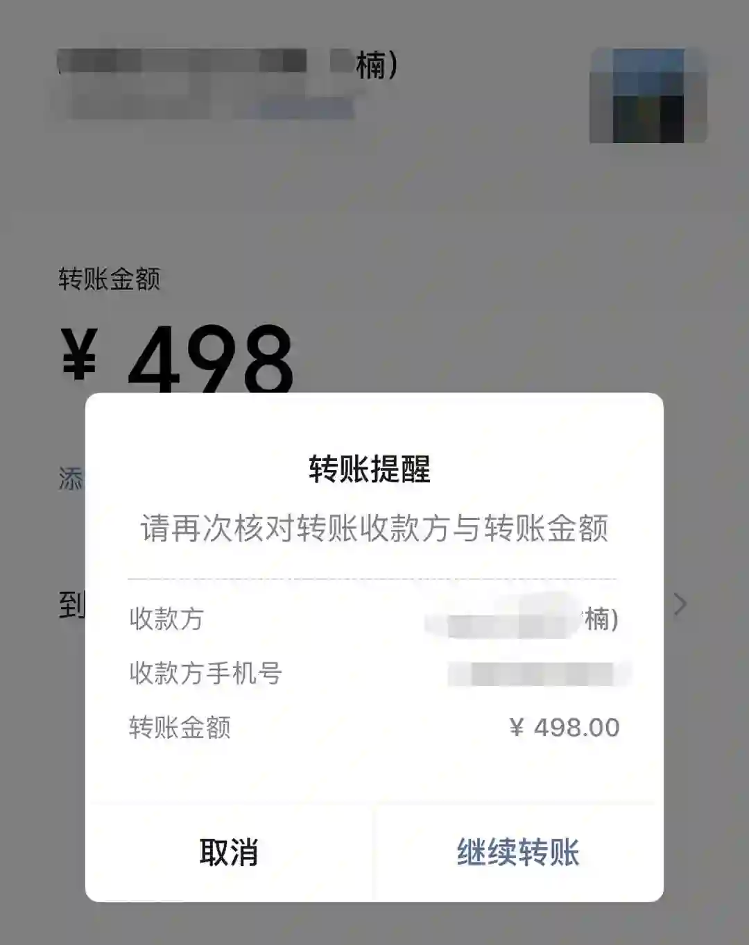 当微信支付智能风控系统监测到交易存在风险时,会提醒你再次确认对方身份信息,或验证对方的实名信息。