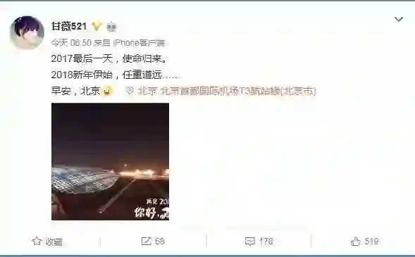 昨日早间,贾跃亭妻子甘薇在微博宣称,已经归国到达北京。但对于贾跃亭是否一同归国一事,甘薇并未提及。对此,腾讯《一线》向乐视汽车官方求证,乐视汽车方面确认此次归国的仅甘薇一人,并表示“甘薇回来该处理的事情一个也不会少”。在本月25日,北京证监局发布通告,责令乐视网前任董事长贾跃亭于2017年12月31日前回国,切实履行公司实际控制人应尽义务,配合解决公司问题,稳妥处理公司风险,切实保护投资者合法权益。