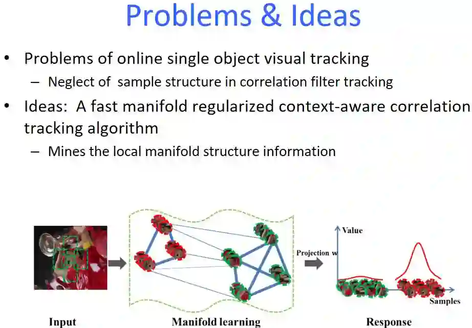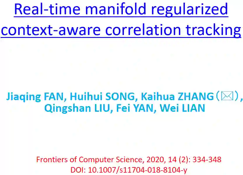 尽管相关滤波类目标跟踪方法取得了较好的效果,但是,其固有的样本循环假设导致样本冗余,不利于学到有效的分类器。本文提出了一种快速流形正则上下文感知相关滤波跟踪算法,来挖掘不同类型样本间的局部流形结构信息。首先,不同于只利用单一基样本的传统相关滤波跟踪方法,本文额外利用了一系列基样本周围的上下文样本,并对其施加流形结构假设。然后,考虑到这些样本之间存在的流形结构,本文在相关滤波学习中,引入线性图拉普拉斯正则项。巧合的是,这个优化问题能够利用快速傅里叶变换求得闭式解,因而能够实现高效计算。大量在OTB100和VOT2016数据集上的实验结果表明,本文提出的跟踪算法在准确性和鲁棒性方面,表现优于几个最先进的算法。特别是本文介绍的跟踪器在单个CPU上以28fps的速度实时运行。