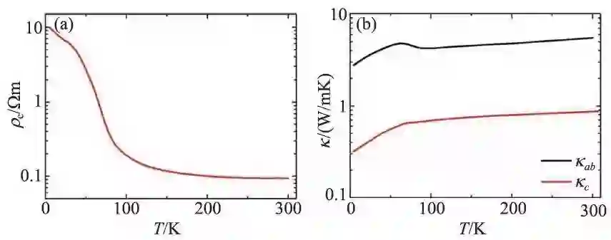 图7 (a)BSCCO 单晶c 方向的电阻率与温度的关系;(b)ab 面、c方向的热导率与温度的关系