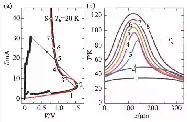 在高偏区域,高温超导太赫兹辐射源具有多个比较特殊的器件物理特性,这里以典型的长方体有源区器件为例介绍电流高偏区域的一些物理现象。