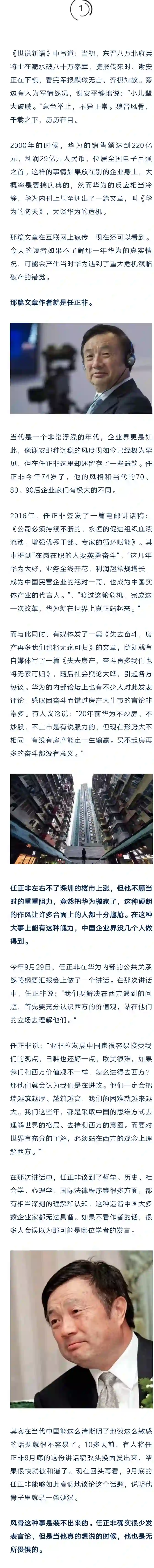 好在中国企业界除了这类人物之外,也还有一些其他的明星人物,比如任正非。