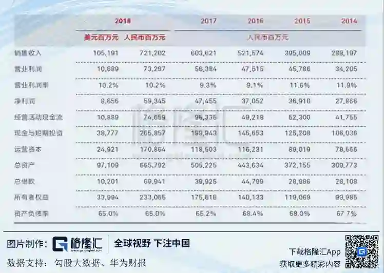 2018年,华为全球销售收入为7212亿元,首次突破1000亿美元大关,同比2017年增长19.5%,净利润为593亿元,同比大增25.1%。
