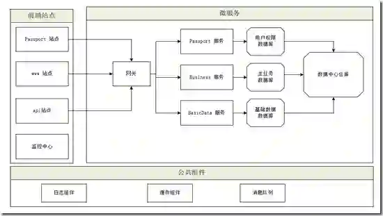 原项目基于传统三层模式组织代码逻辑,随着时间的推移,项目内各模块逻辑互相交织,互相依赖,维护起来较为困难.为此我们需要引入一种新的机制来尝试改变这个现状,在考察了 Java spring cloud/doubbo, c# wcf/webapi/asp.net core 等一些微服务框架后,我们最终选择了基于 .net core + Ocelot 微服务方式. 经过讨论大家最终期望的项目结果大致如下所示.