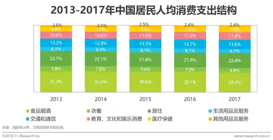 从宏观经济环境来看,我国正处于以物质消费为主向服务型消费转变的过程中,服务型消费增势强劲。随着居民收入水平不断提高、中等收入群体不断扩大,为服务业注入了活力和动力,居民消费结构中,服务和享受型消费的占比进一步增加。